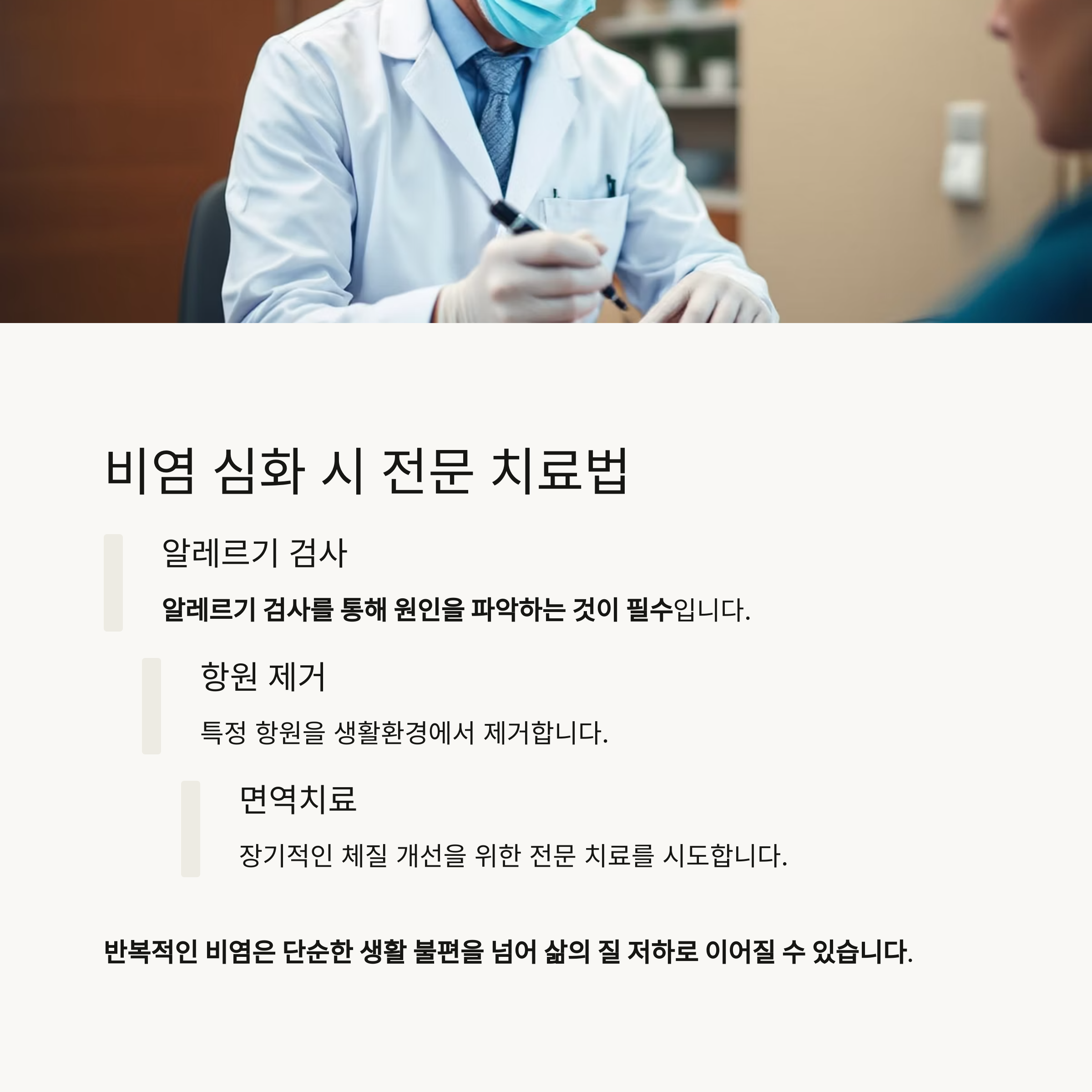 비염 심화 시 전문의 진단과 면역치료 고려