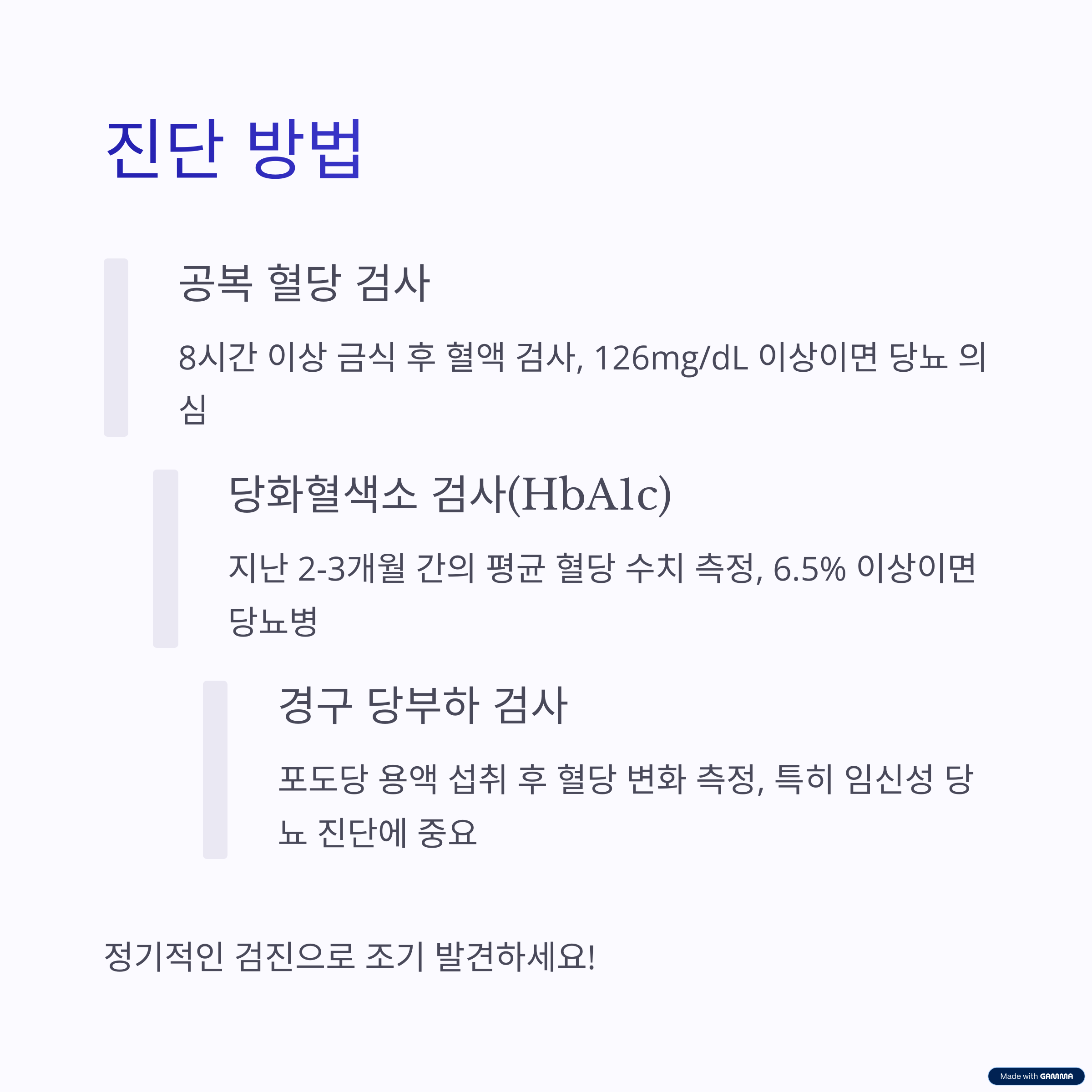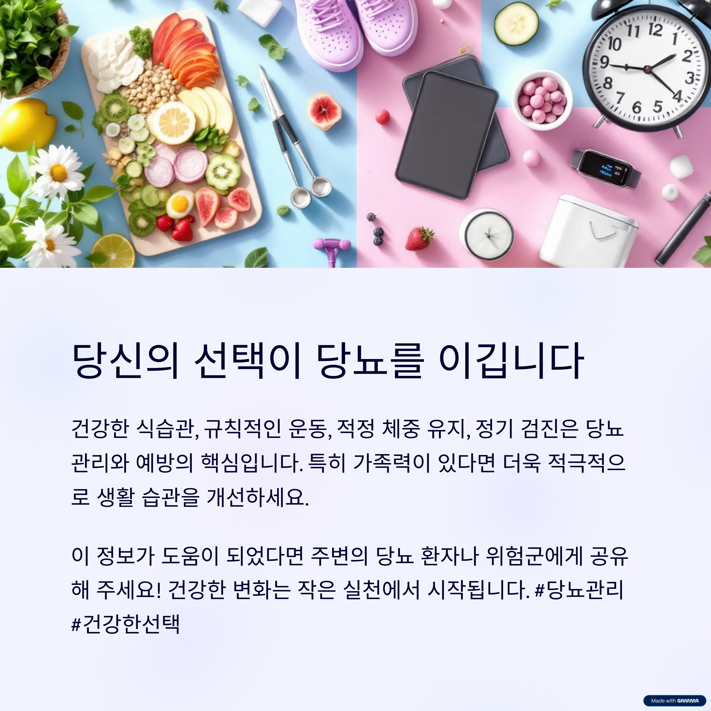 정기적인 검사와 꾸준한 혈당 관리가 반드시 필요합니다. ⚠️