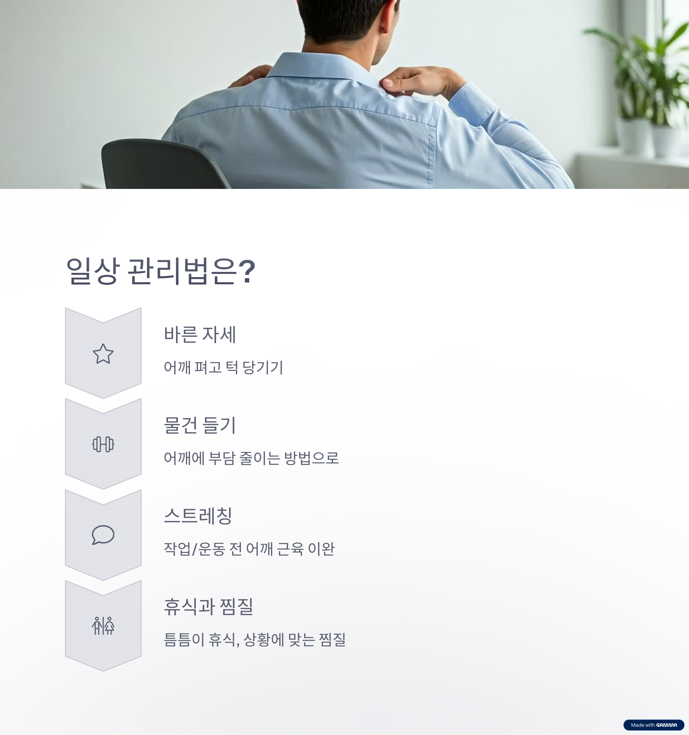 꾸준한 통증을 무시하면 오히려 회전근개 파열 같은 더 큰 문제로 발전할 수 있어요. 조기 대응이 핵심입니다 😊