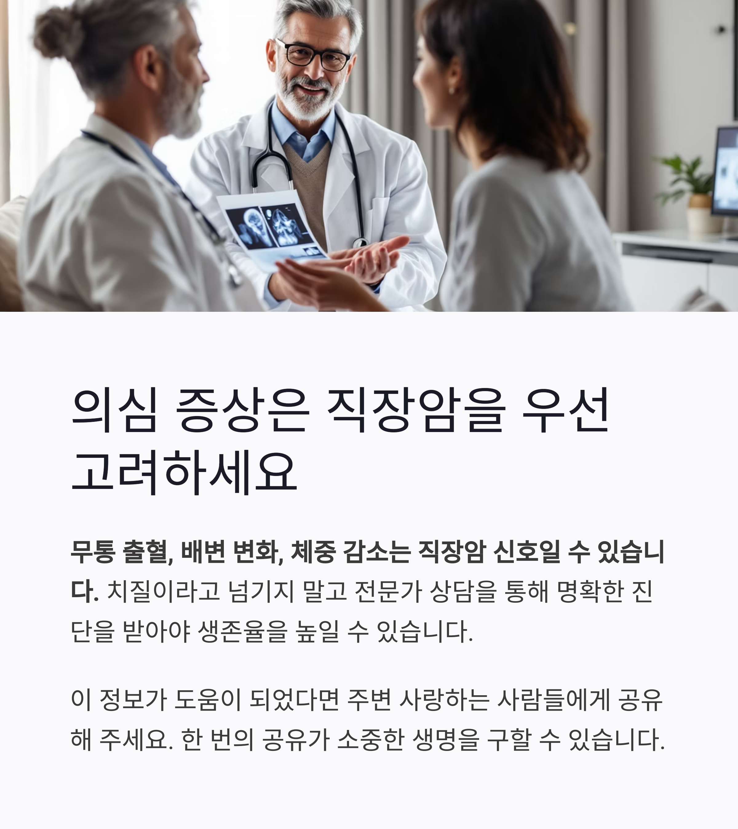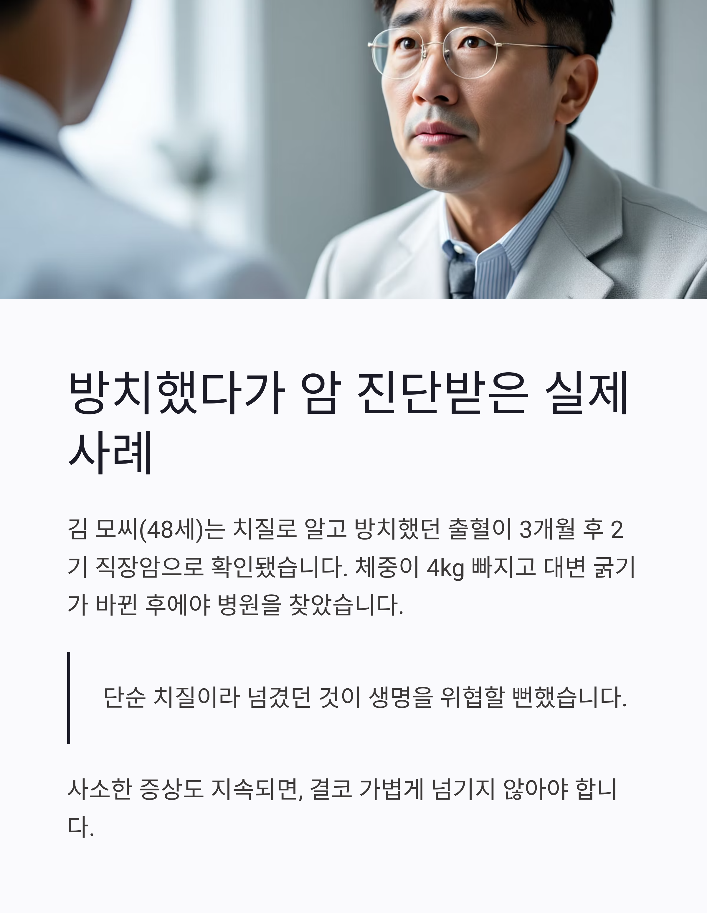 초기에는 배변 후 소량의 혈만 보여 무시했지만