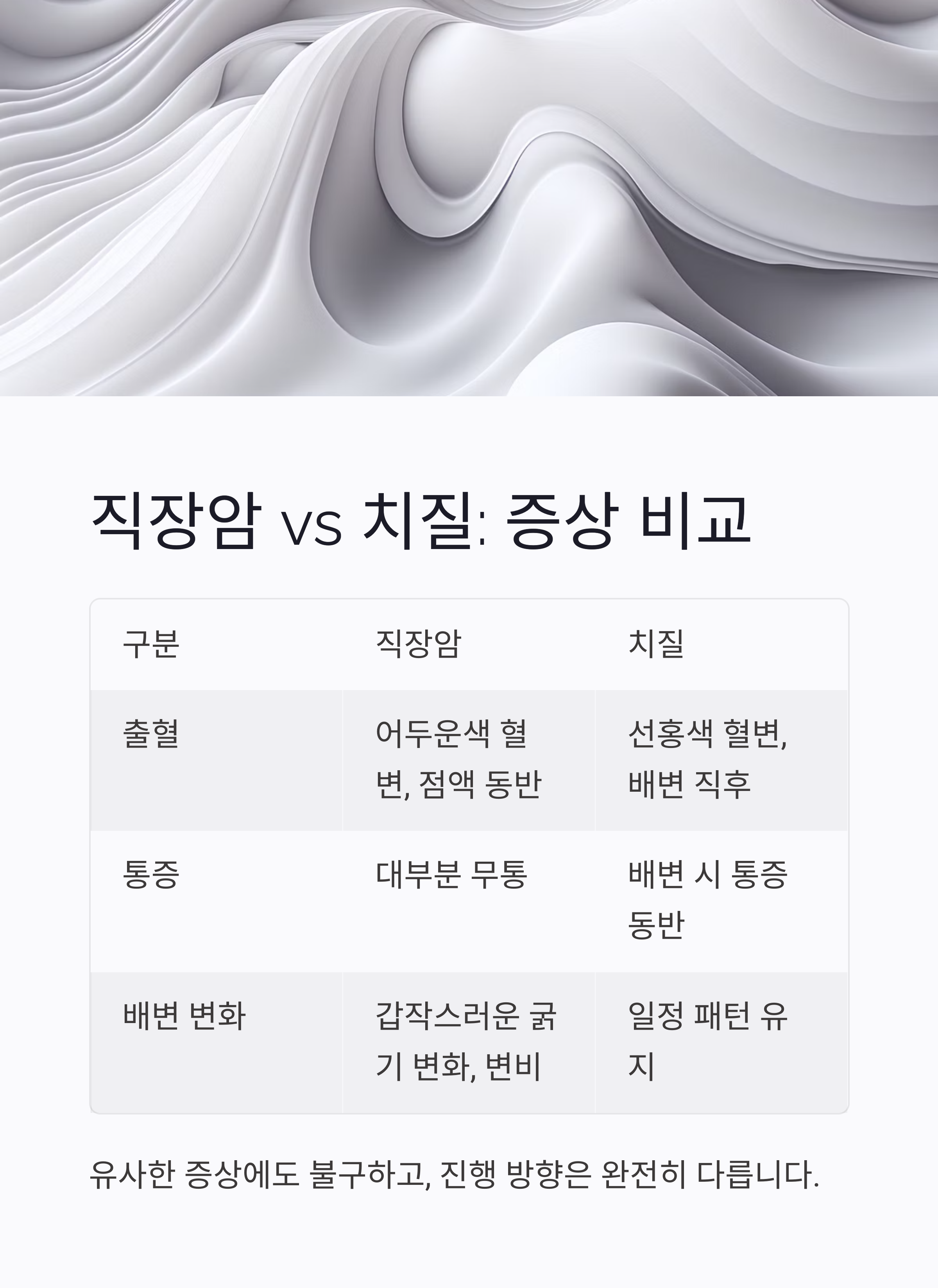직장암과 치질, 증상 비슷해도 대응은 완전히 달라야 합니다