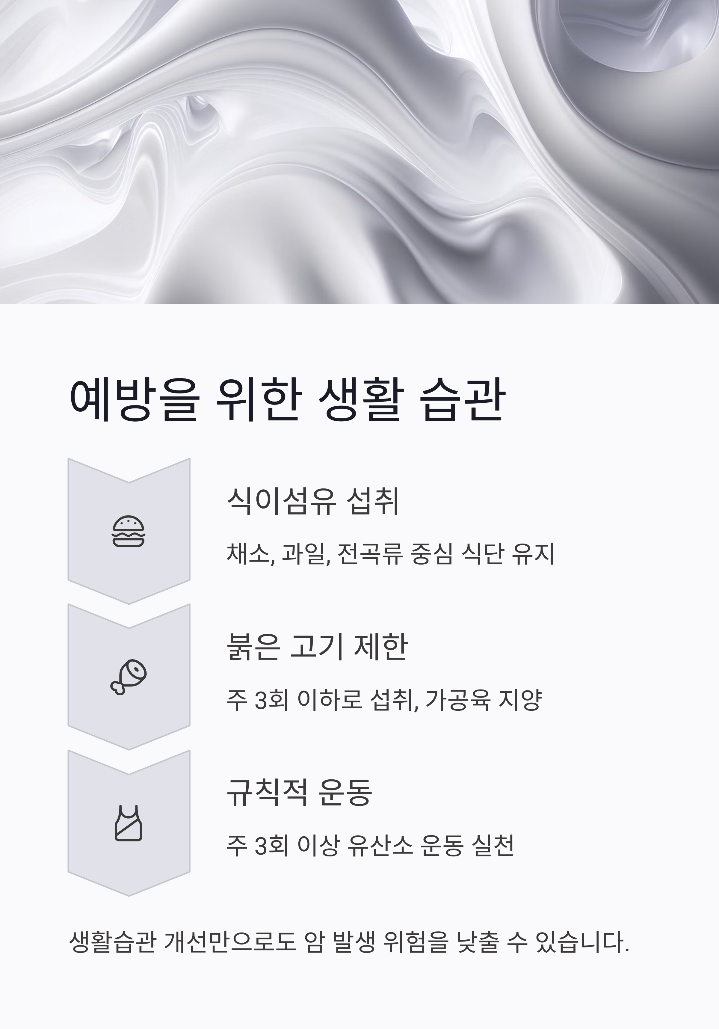 생활습관 개선만으로도 암 발생 위험을 낮출 수 있습니다.
