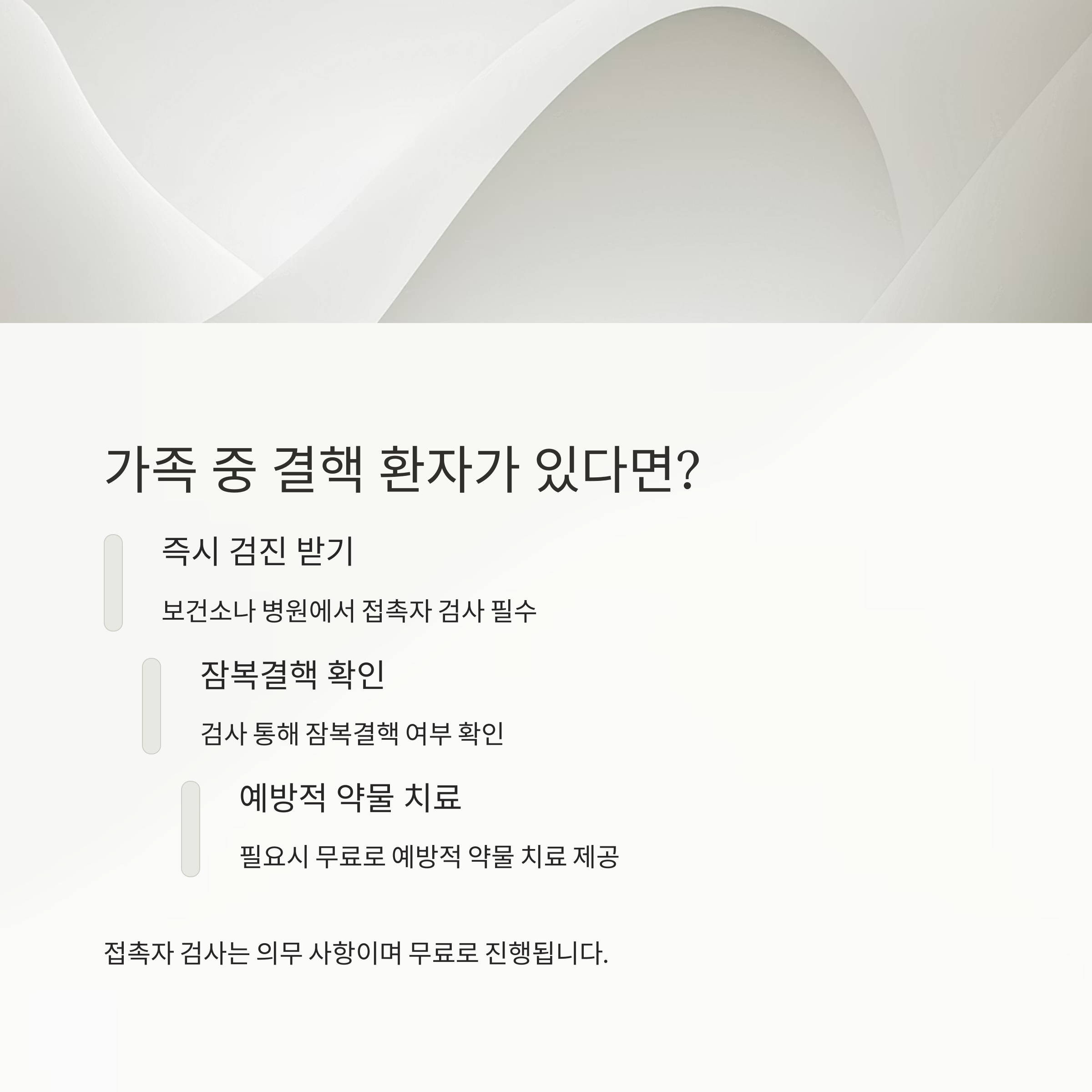 가족이나 동거인 중 결핵 확진자가 나왔다면 즉시 보건소 또는 병원에서 검진을 받아야 합니다.