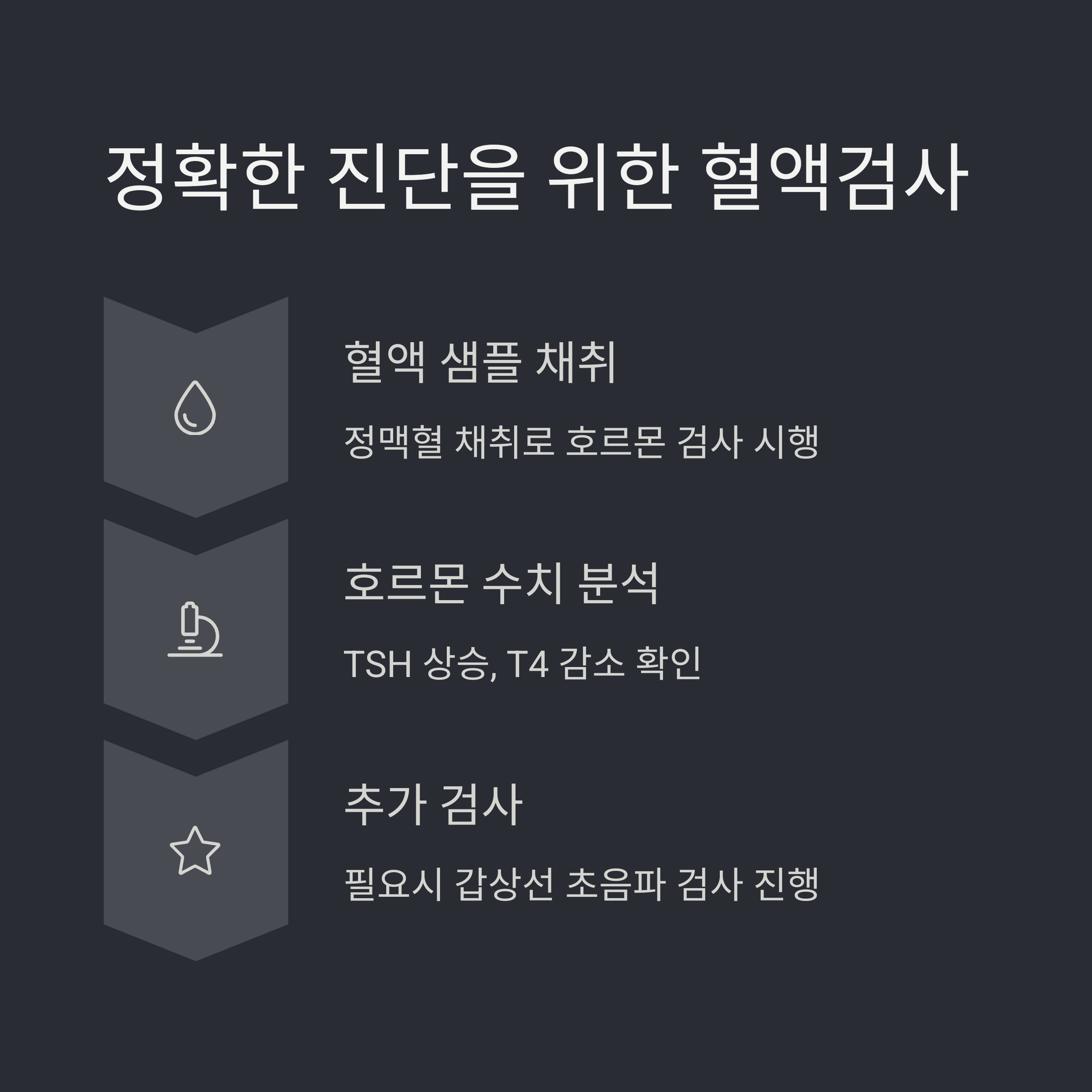 TSH(갑상선 자극 호르몬)와 FT4 수치를 확인합니다.