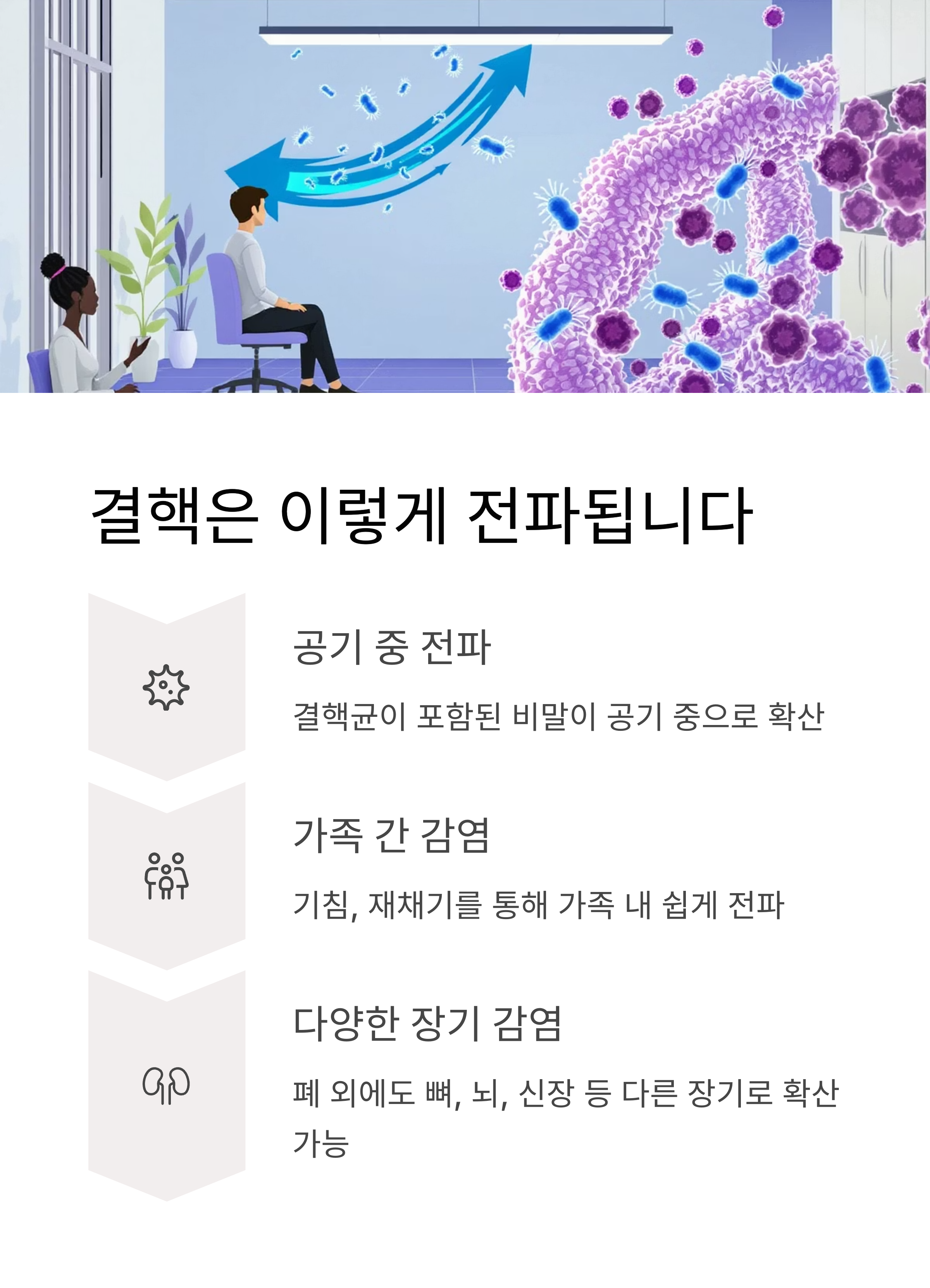 결핵은 공기 중 전파되는 대표적인 감염병입니다.