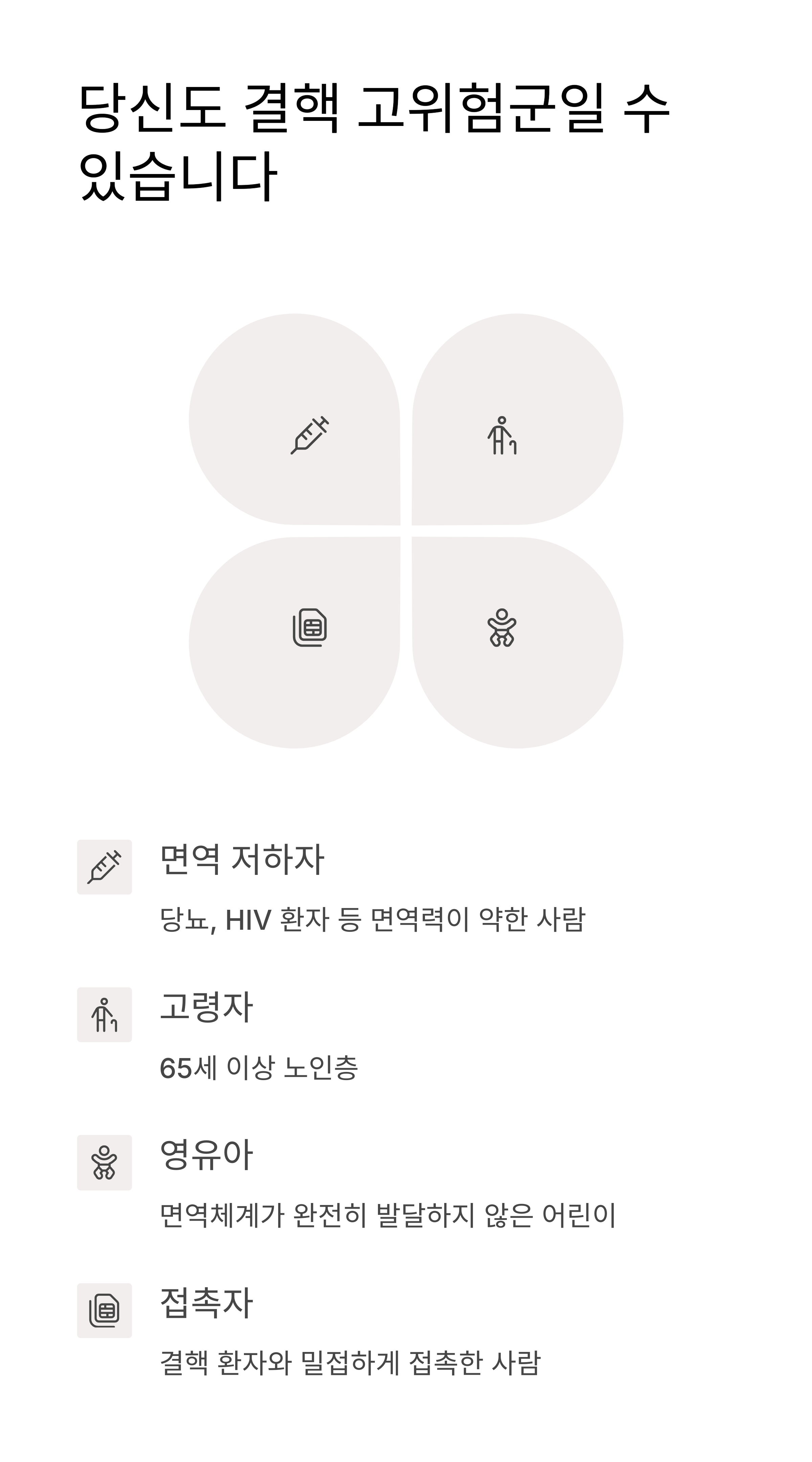 - 당뇨, 만성질환, 면역억제 치료 중인 환자