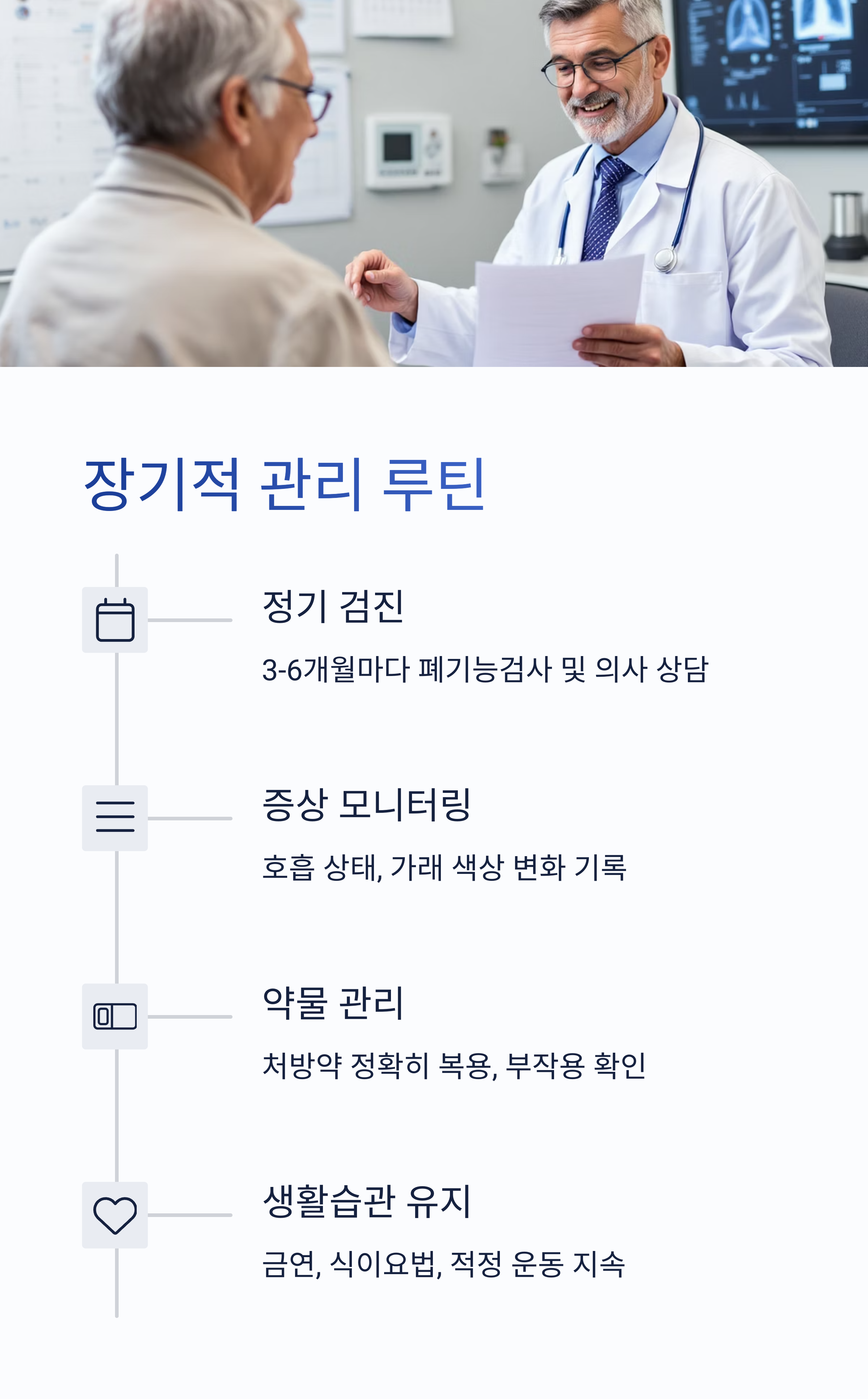 - 금연 치료 및 백신 접종 (독감, 폐렴)