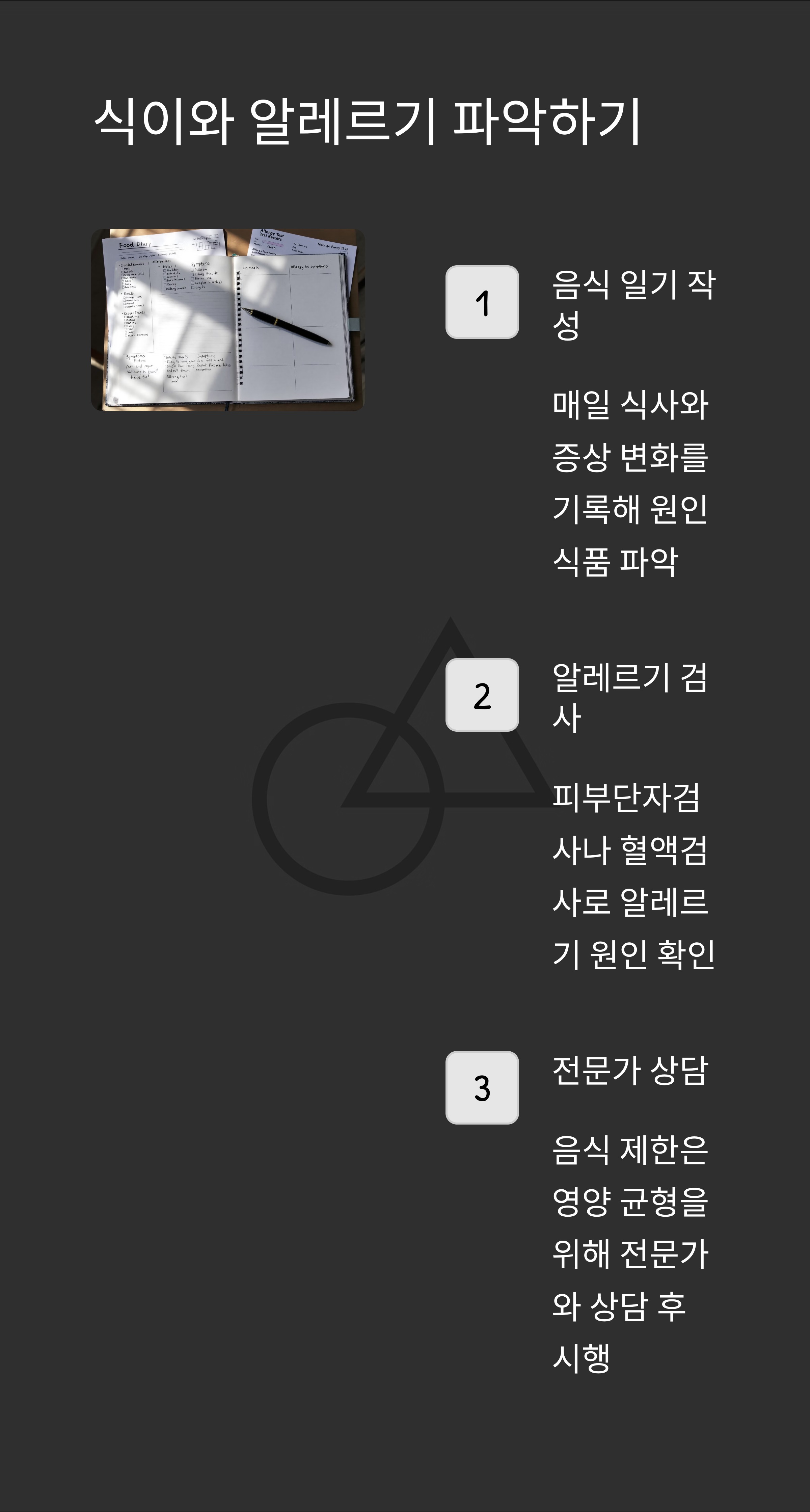 - 식사 일기 작성으로 유발 음식 추적
