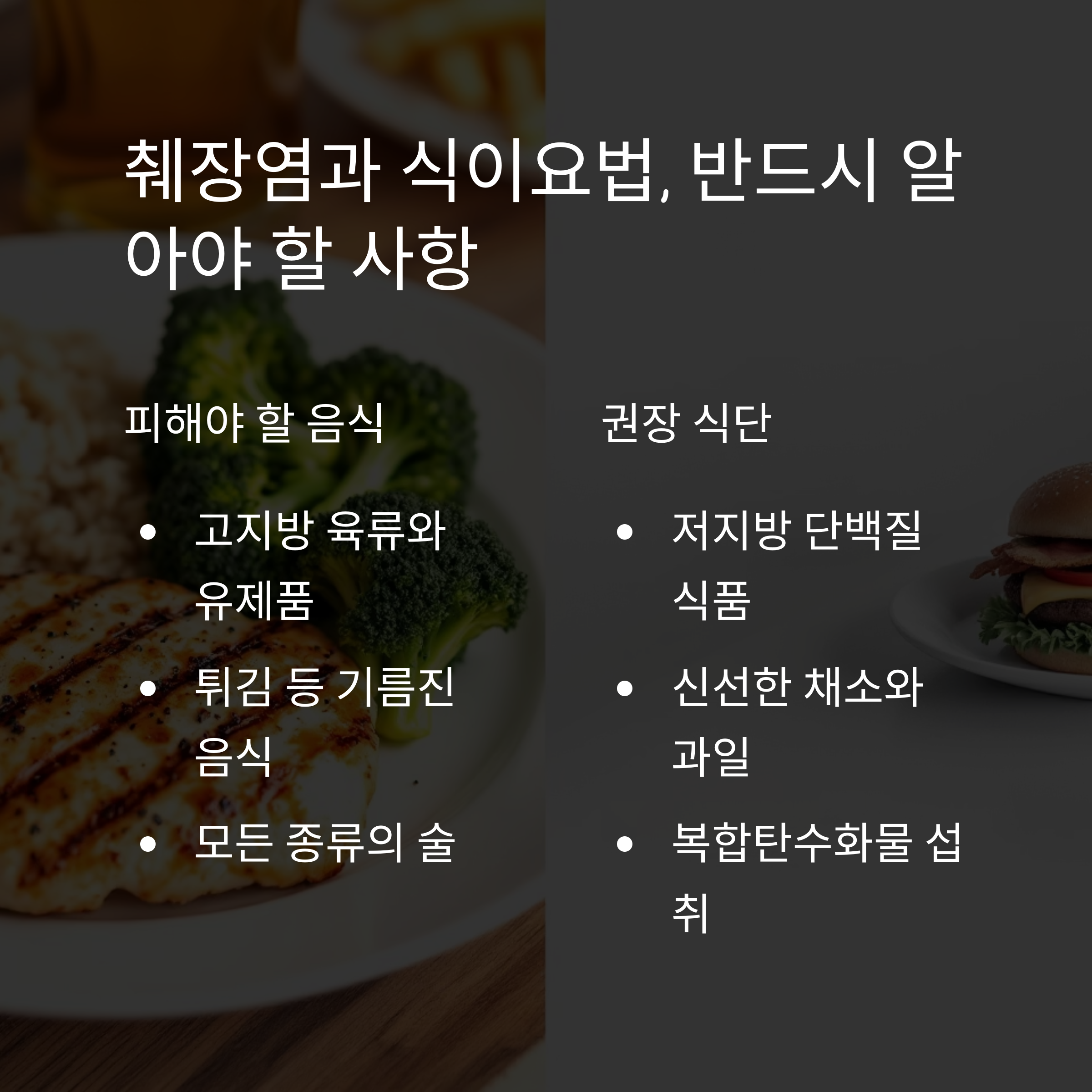 - 술, 튀김류, 붉은 고기, 고지방 유제품