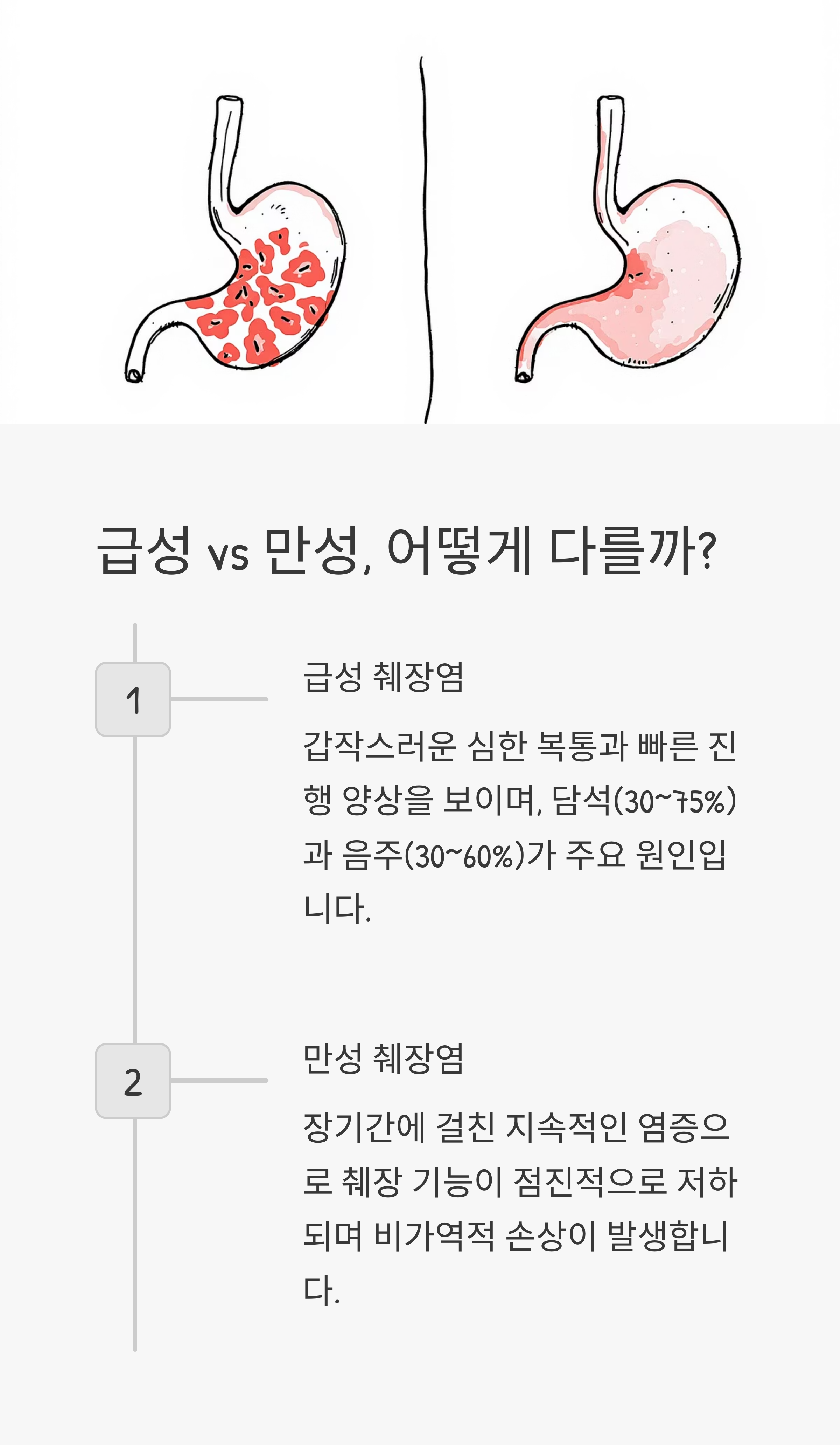 - 대부분 음주나 담석이 원인