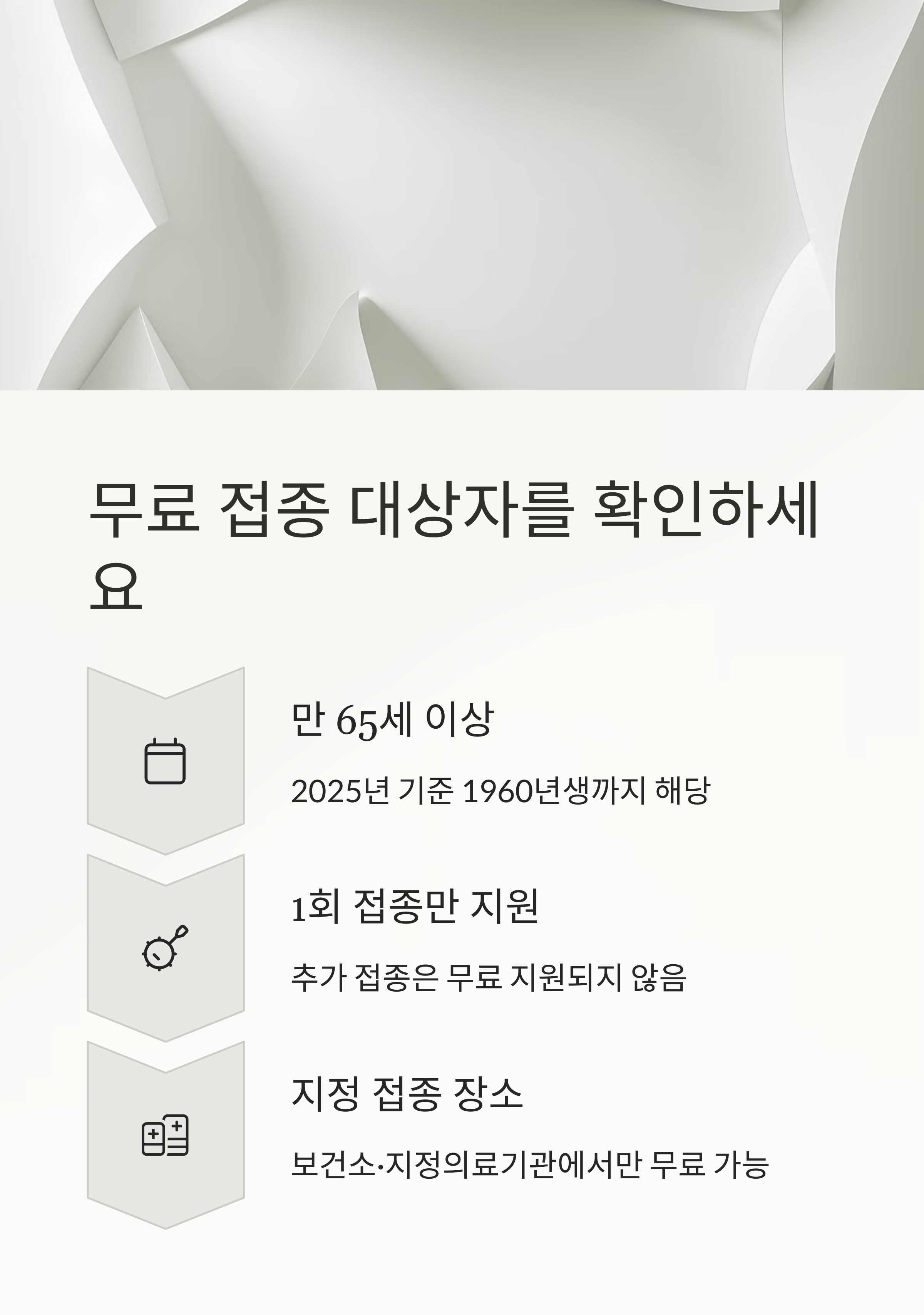 - 65세 이상 일반 고령자에게 무료 접종