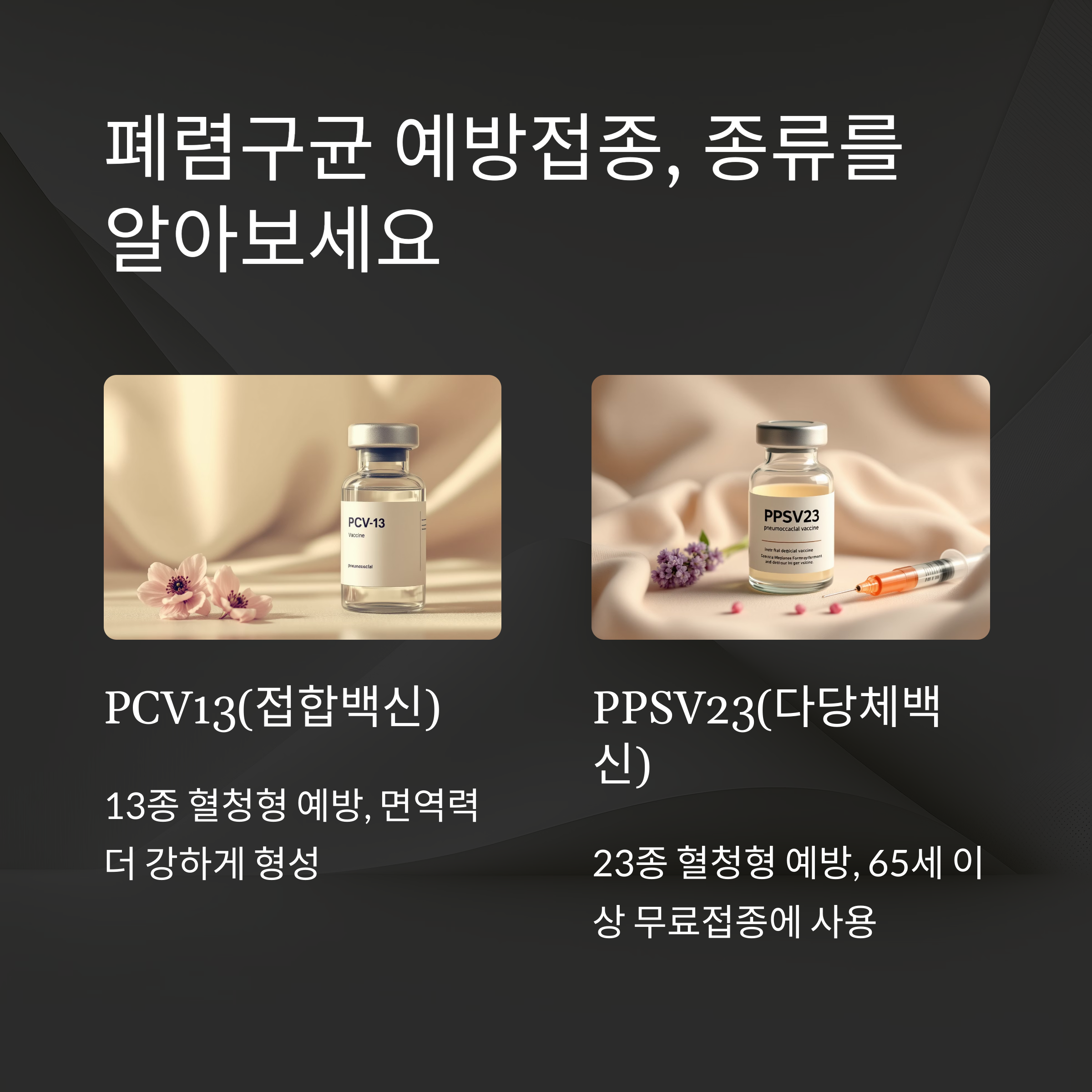 폐렴구균 백신은 두 가지가 있습니다.
