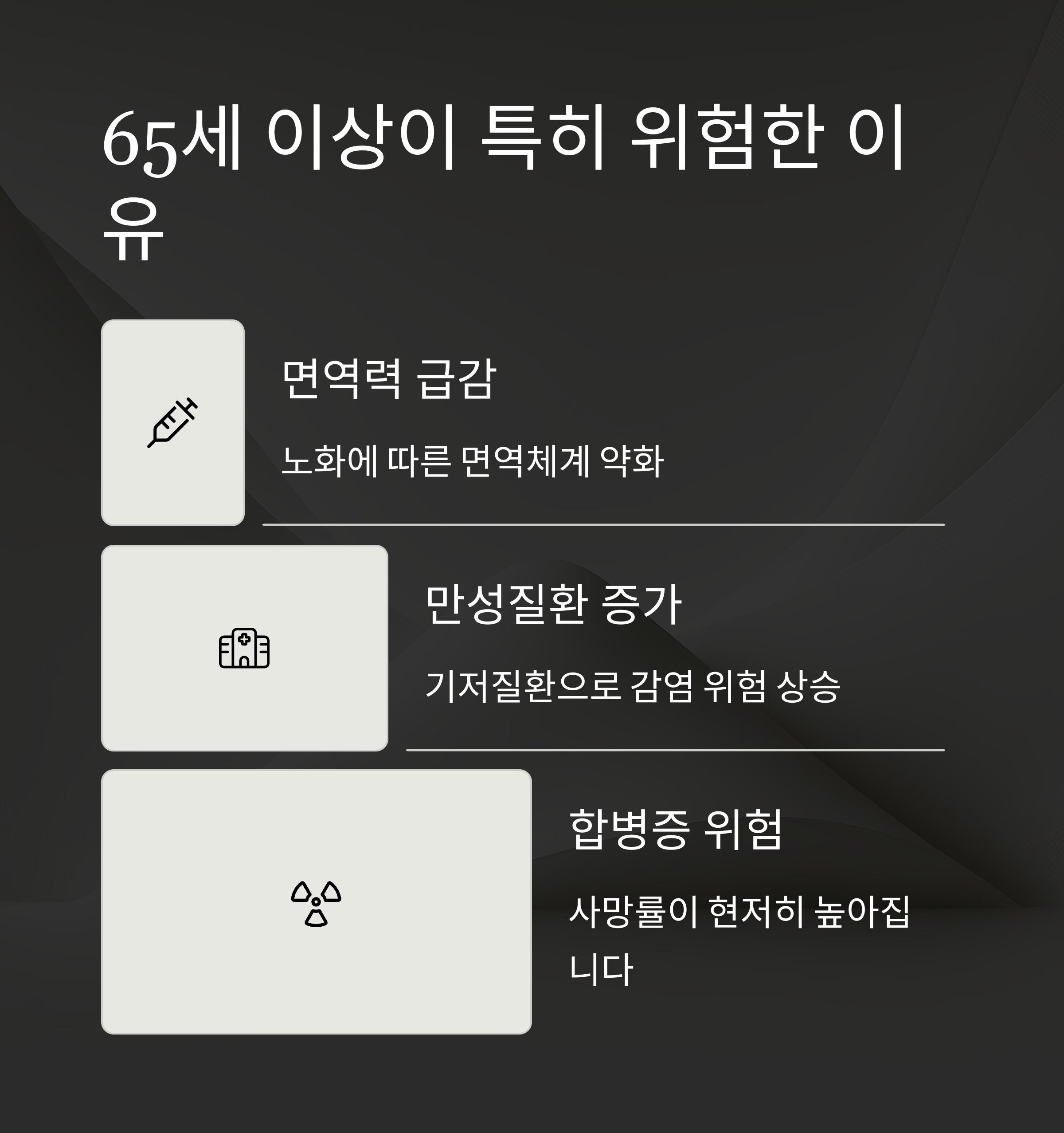 특히 65세 이상 고령자나 만성질환자에게는