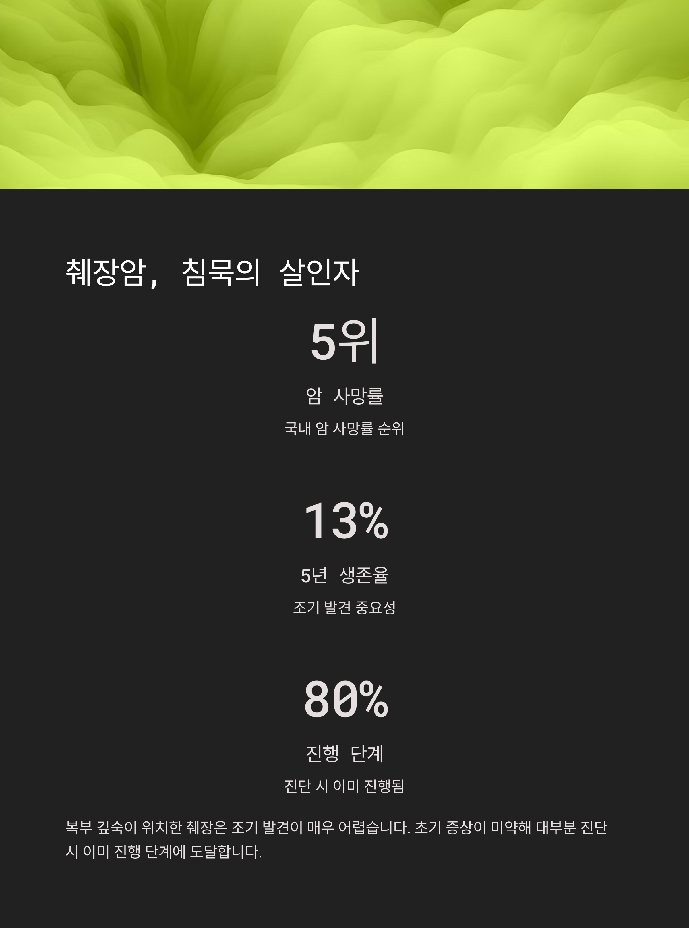 조용히 퍼지는 췌장암, 증상은 작지만 의미는 큽니다. 사소한 변화도 놓치지 마세요