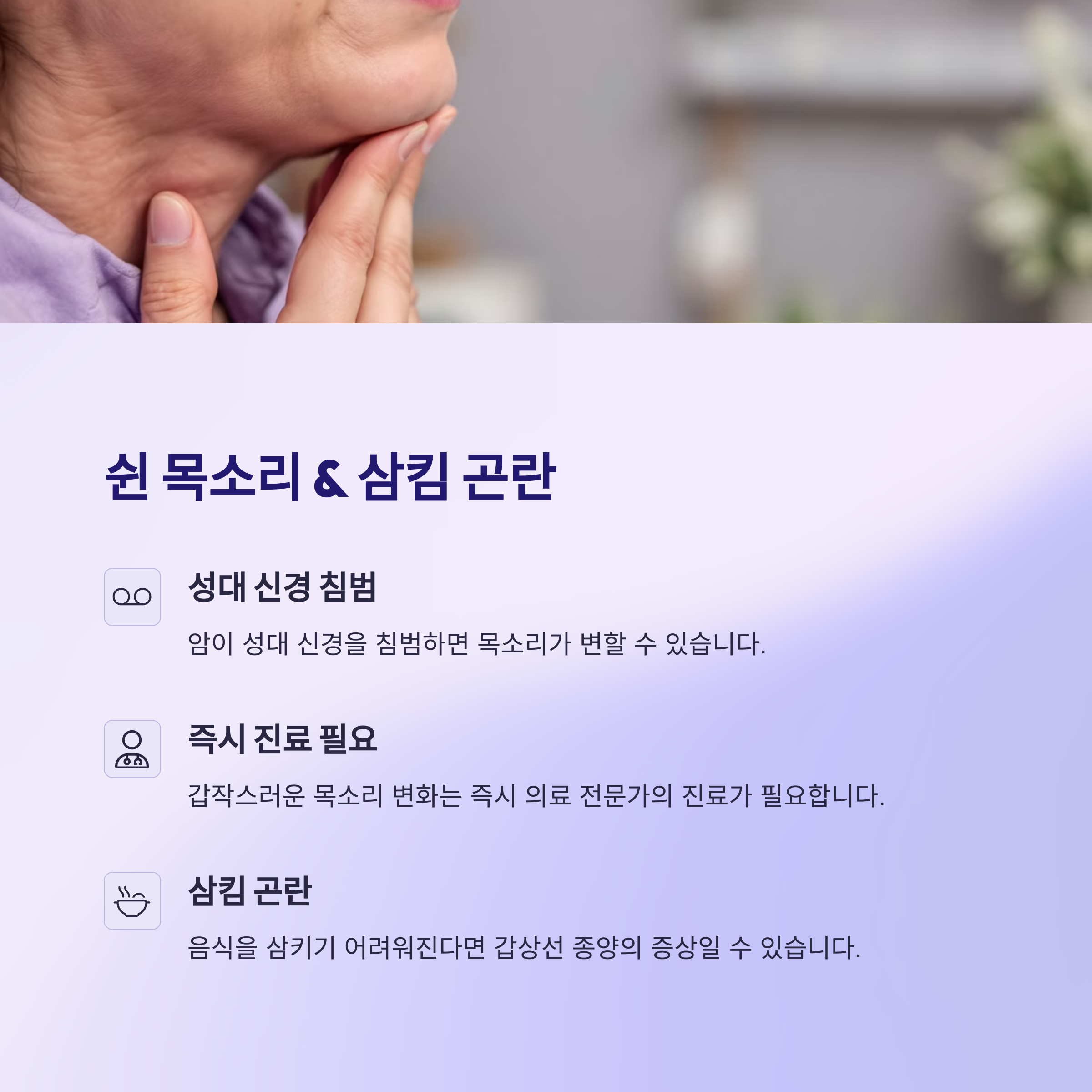 #갑상선암증상 #목에혹 #쉰목소리 #삼킴곤란 #갑상선자가진단 #목압박감