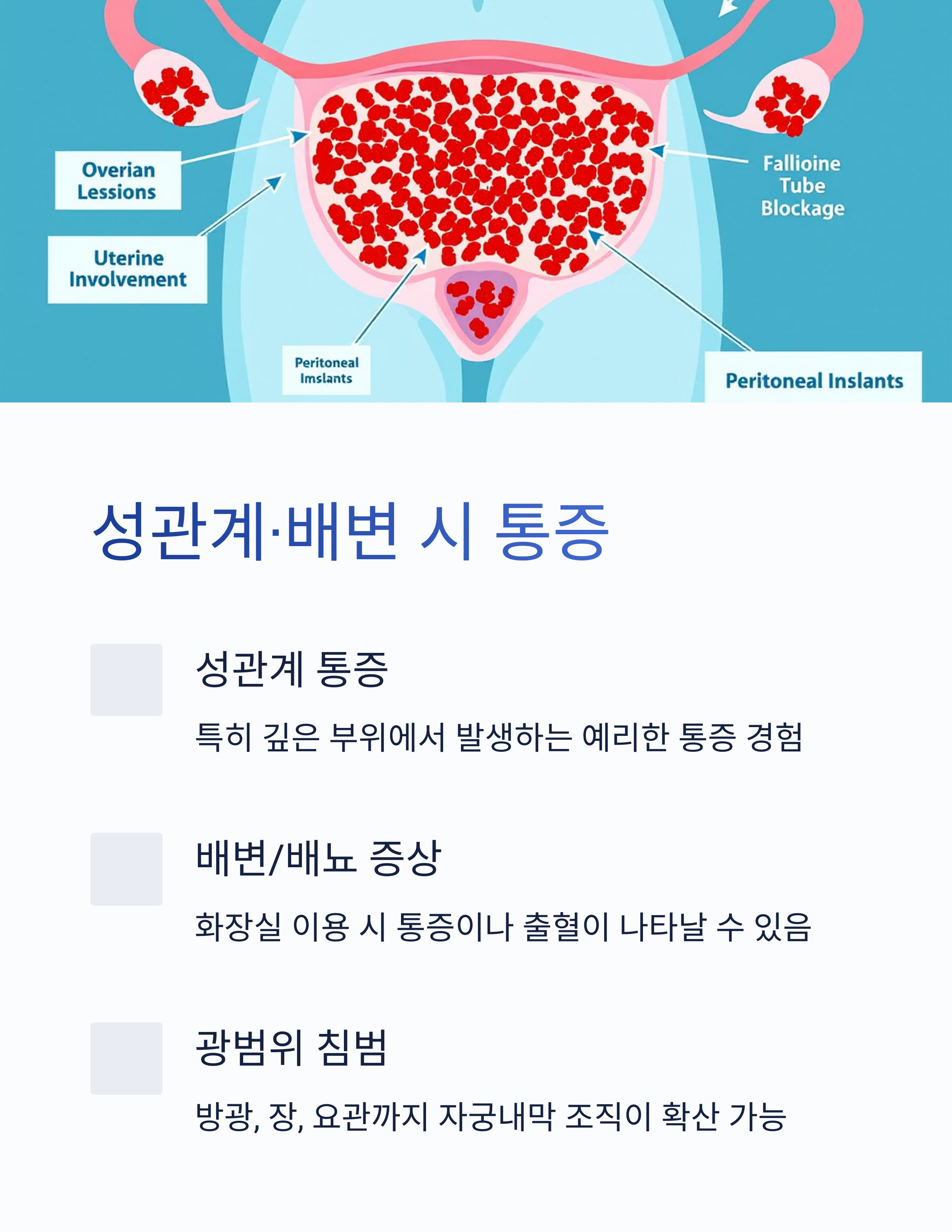 염증, 유착, 통증 등을 유발합니다