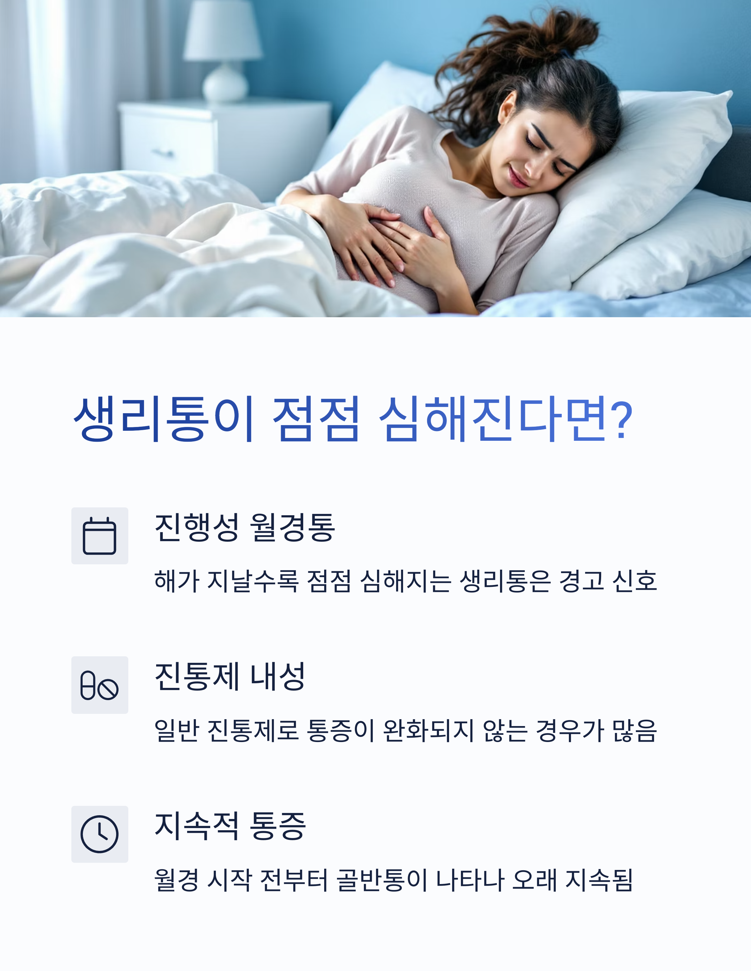 "변화하는 생리통 강도는 자궁의 구조적 문제 신호일 수 있습니다"