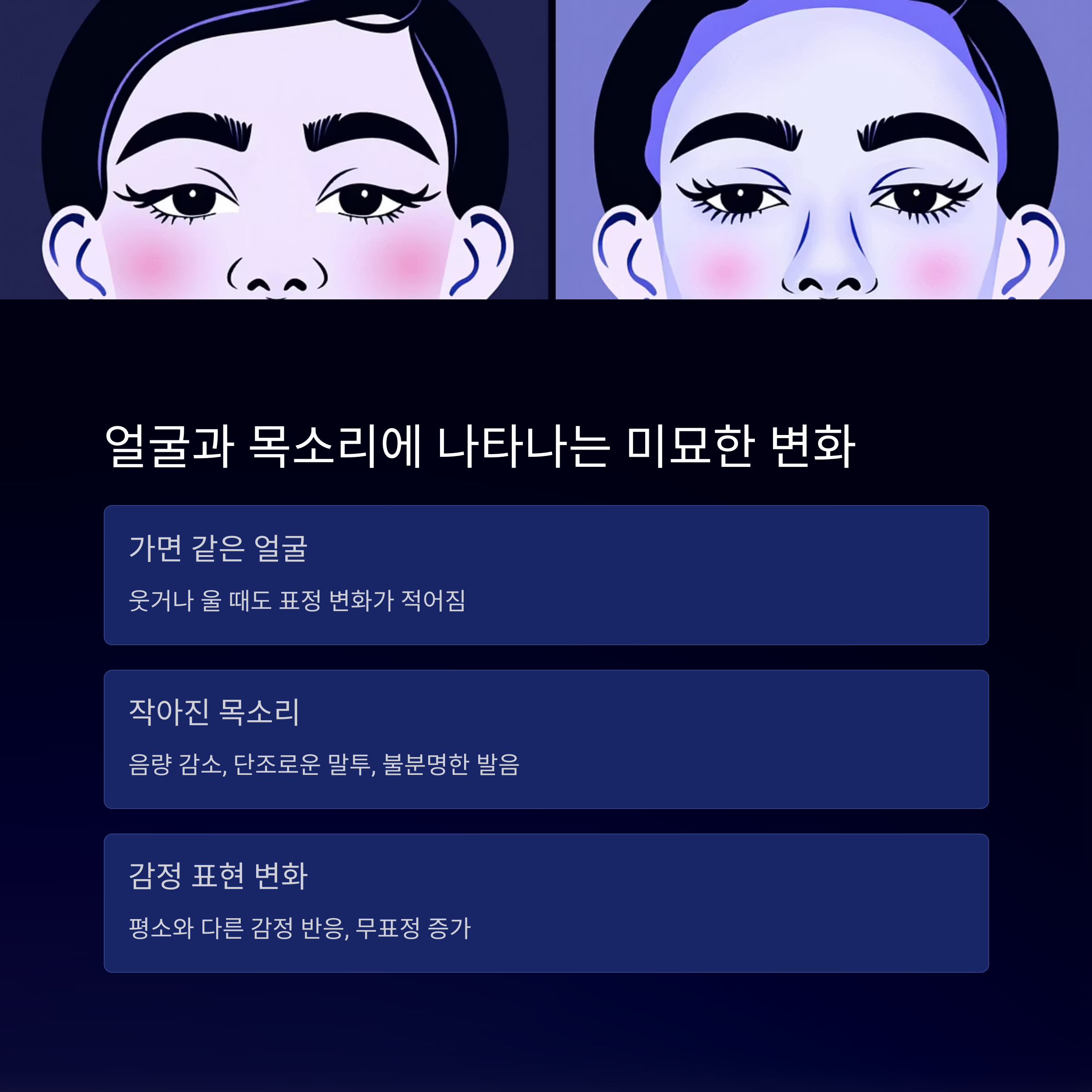 얼굴 표정 감소와 말수 줄어듦, 감정 표현의 변화