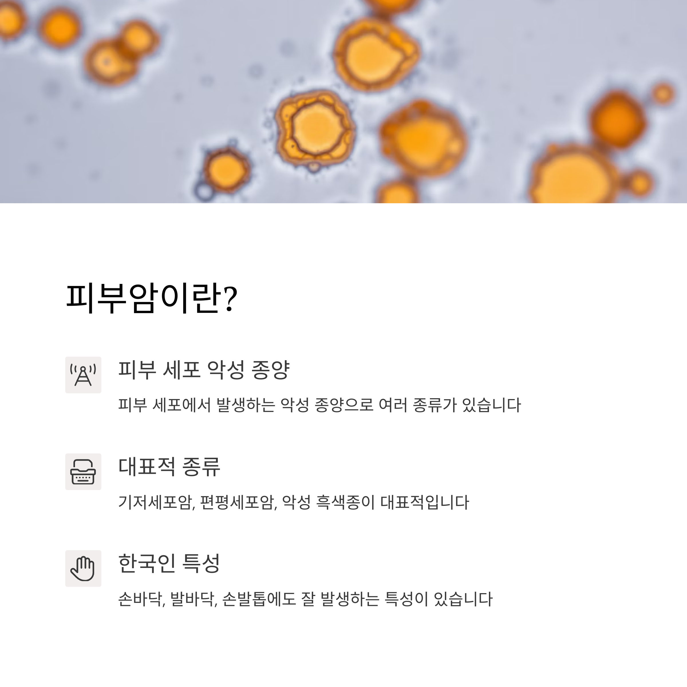 피부암이란? 피부 세포에서 발생하는 다양한 종류의 악성 종양