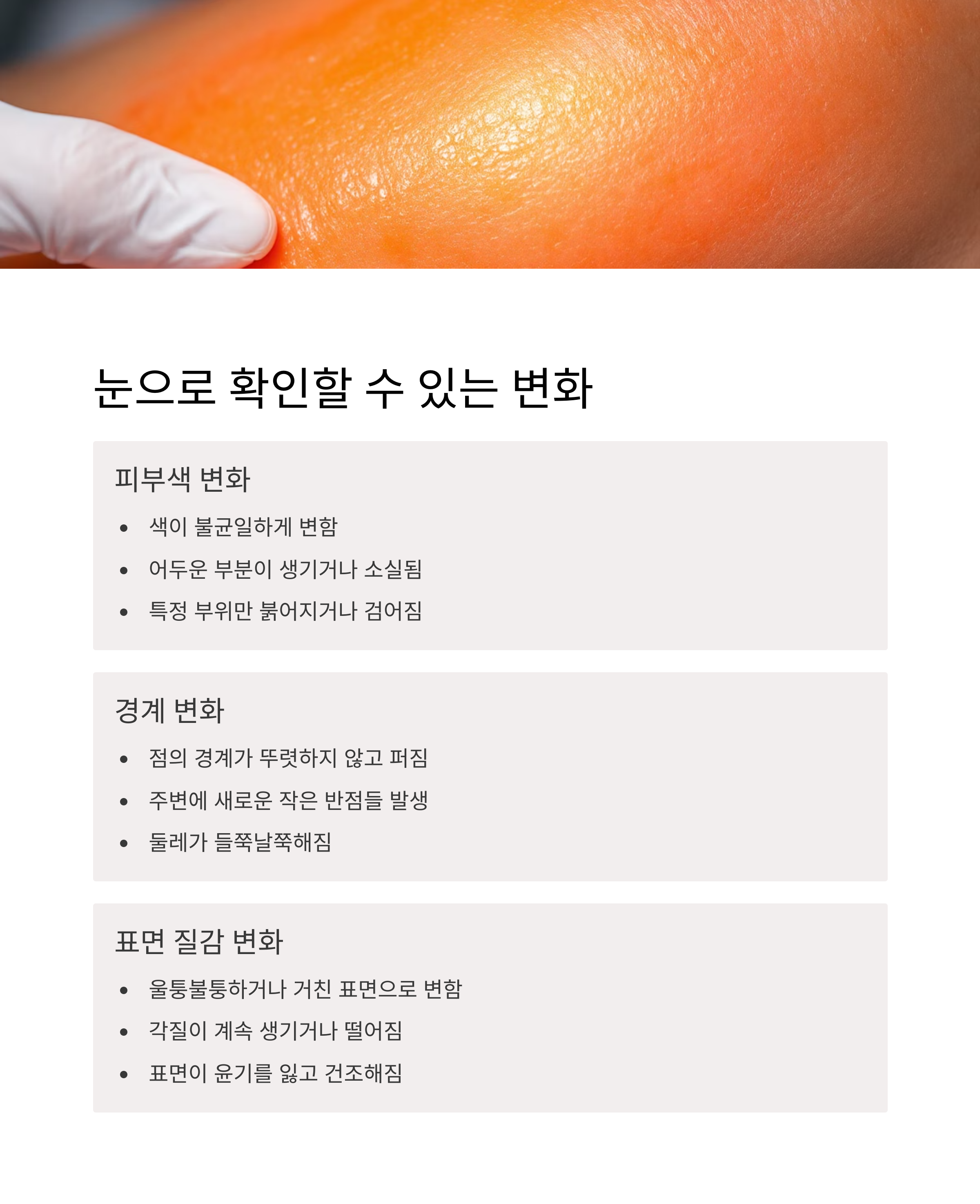 피부색 변화, 경계 불규칙성 등 육안으로 확인할 수 있는 변화