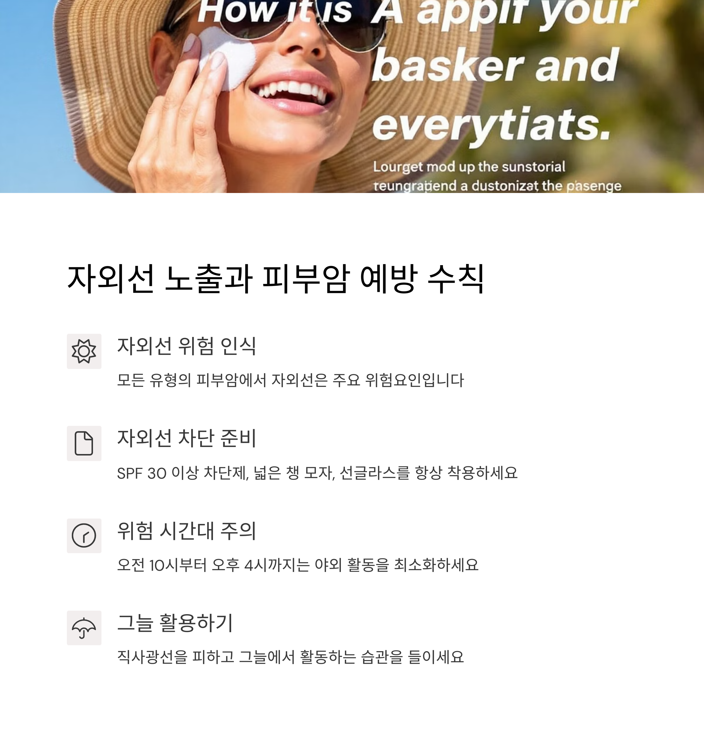- 자외선 차단제 매일 사용 (SPF 30 이상)