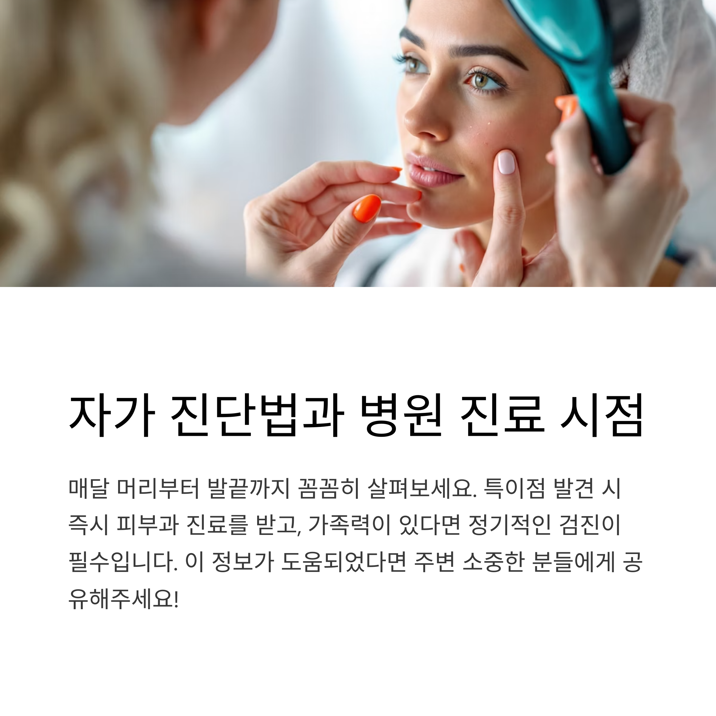 "이상 신호가 느껴지면 지체 없이 피부과 전문의 상담을 받으세요"